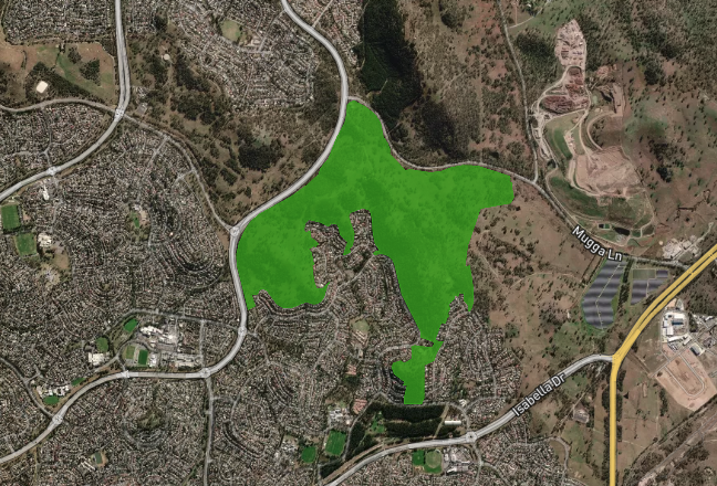 Then Mount Majura Nature Reserve protects stands of Drooping She-oak, which is an important foraging resource for the Glossy Black-cockatoo, which is listed as vulnerable. There is a large area of critically endangered Yellow Box-Blakely’s Red Gum on the lower slopes of the reserve. The critically endangered Canberra Spider Orchid can be found in the reserve. (and 2023)
