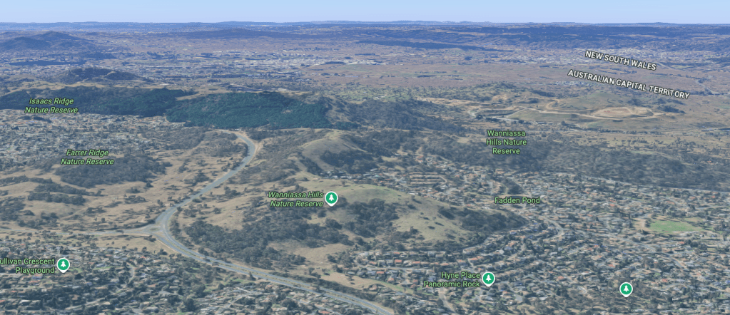Above: a view of Mount Majura. Image c/o Google Maps