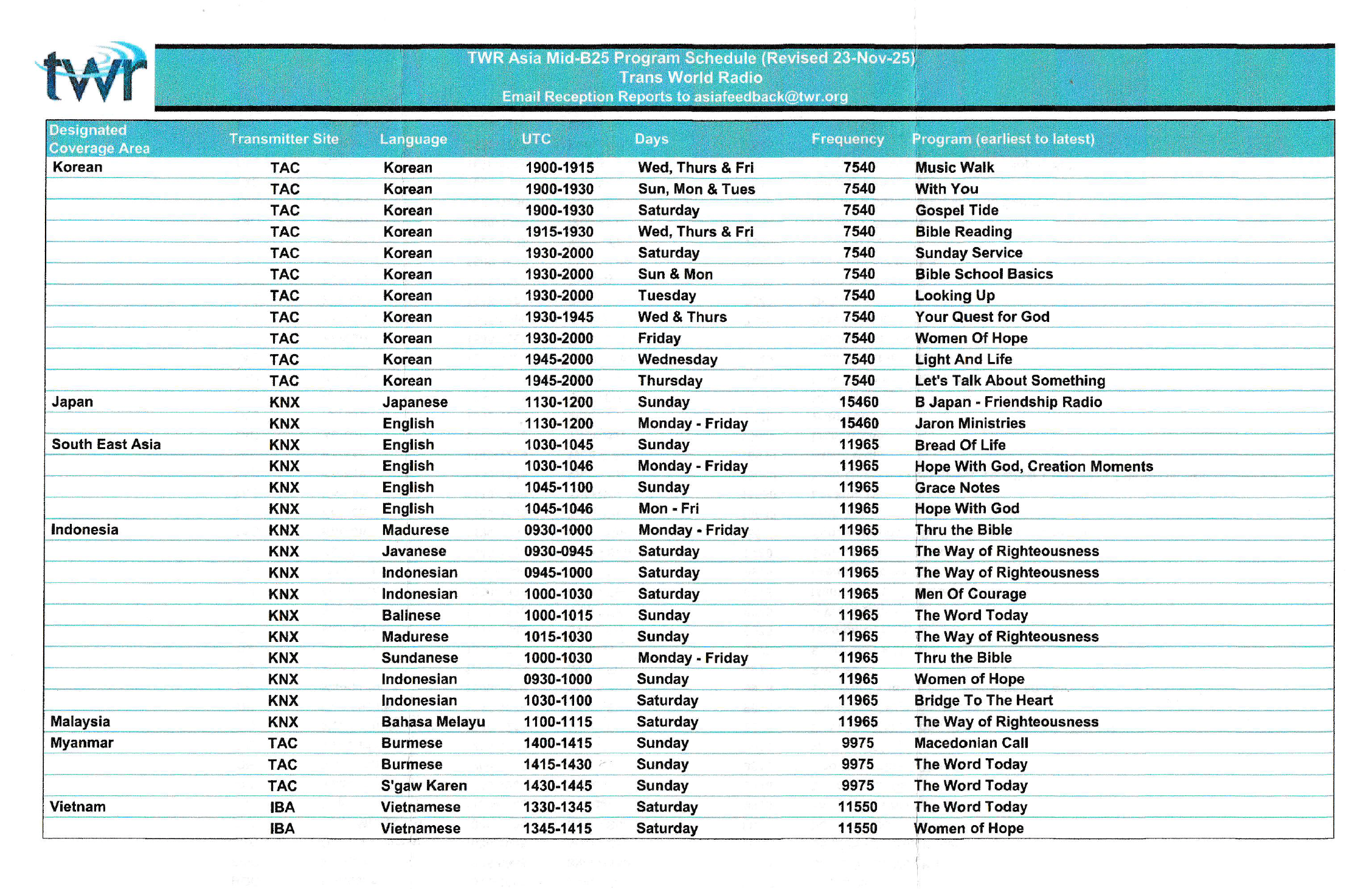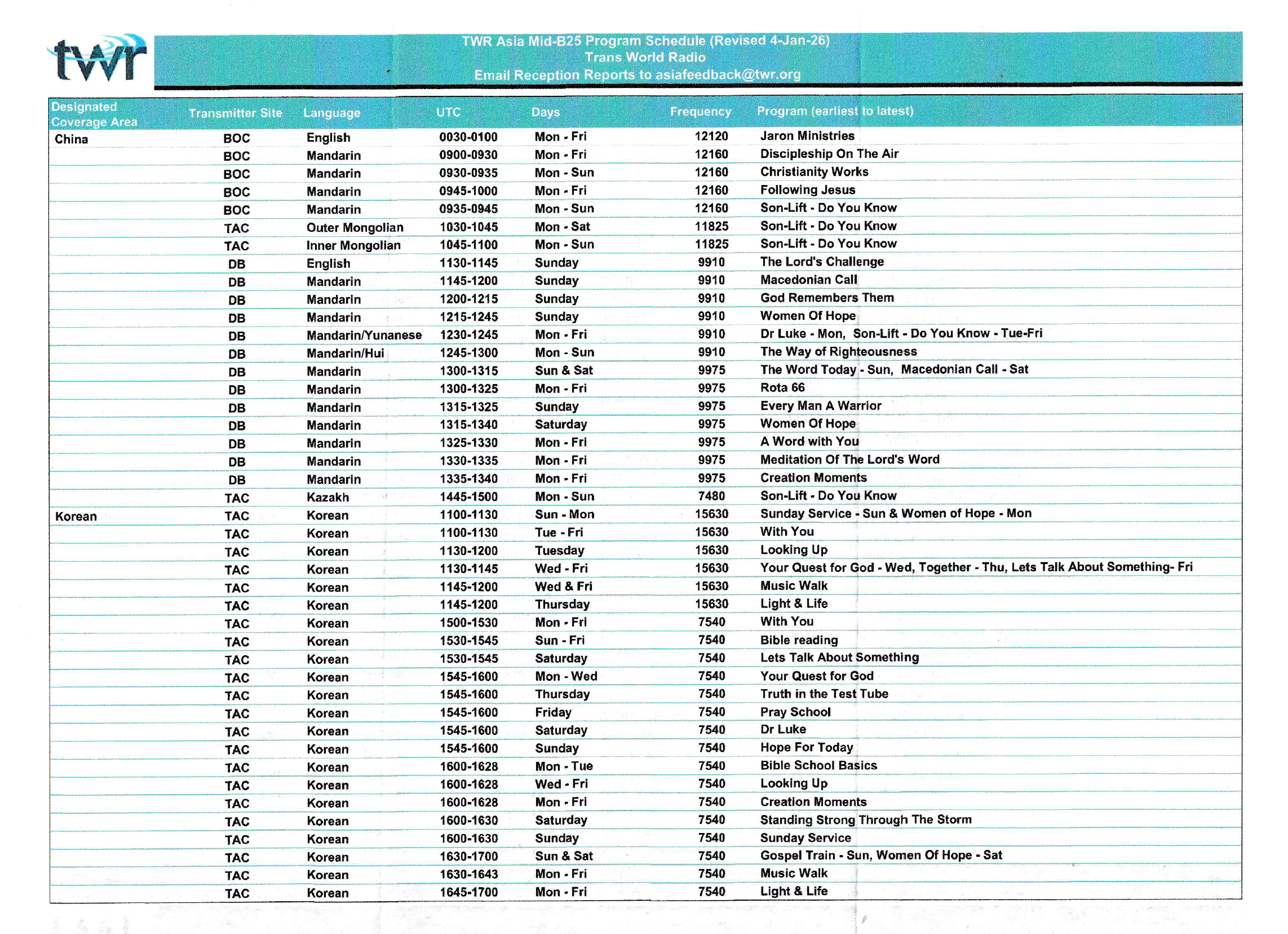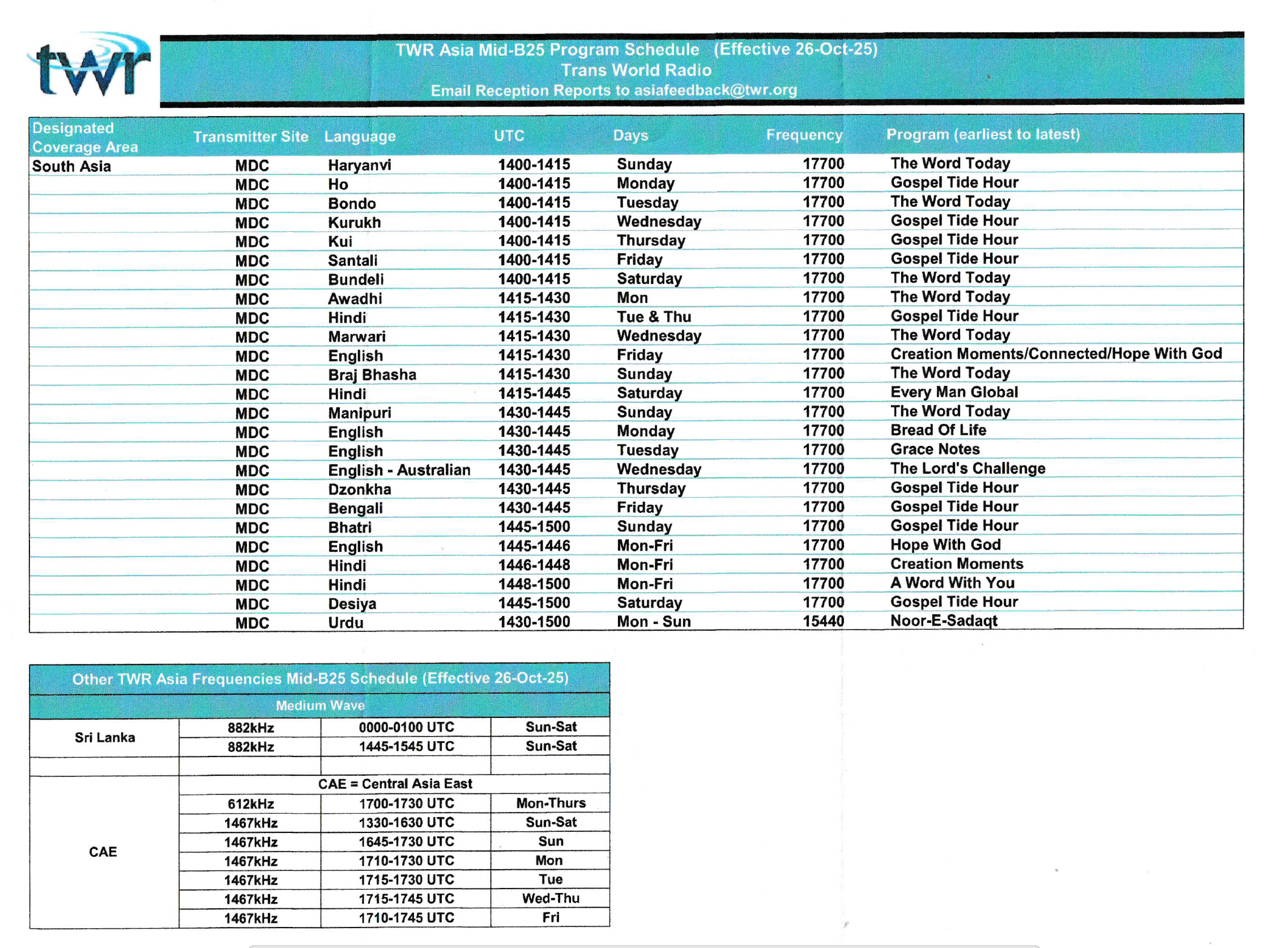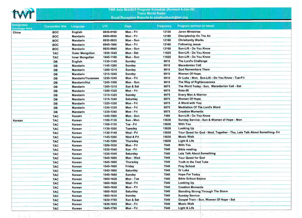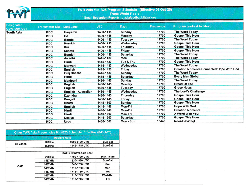 and the October 2025 broadcast schedule…..