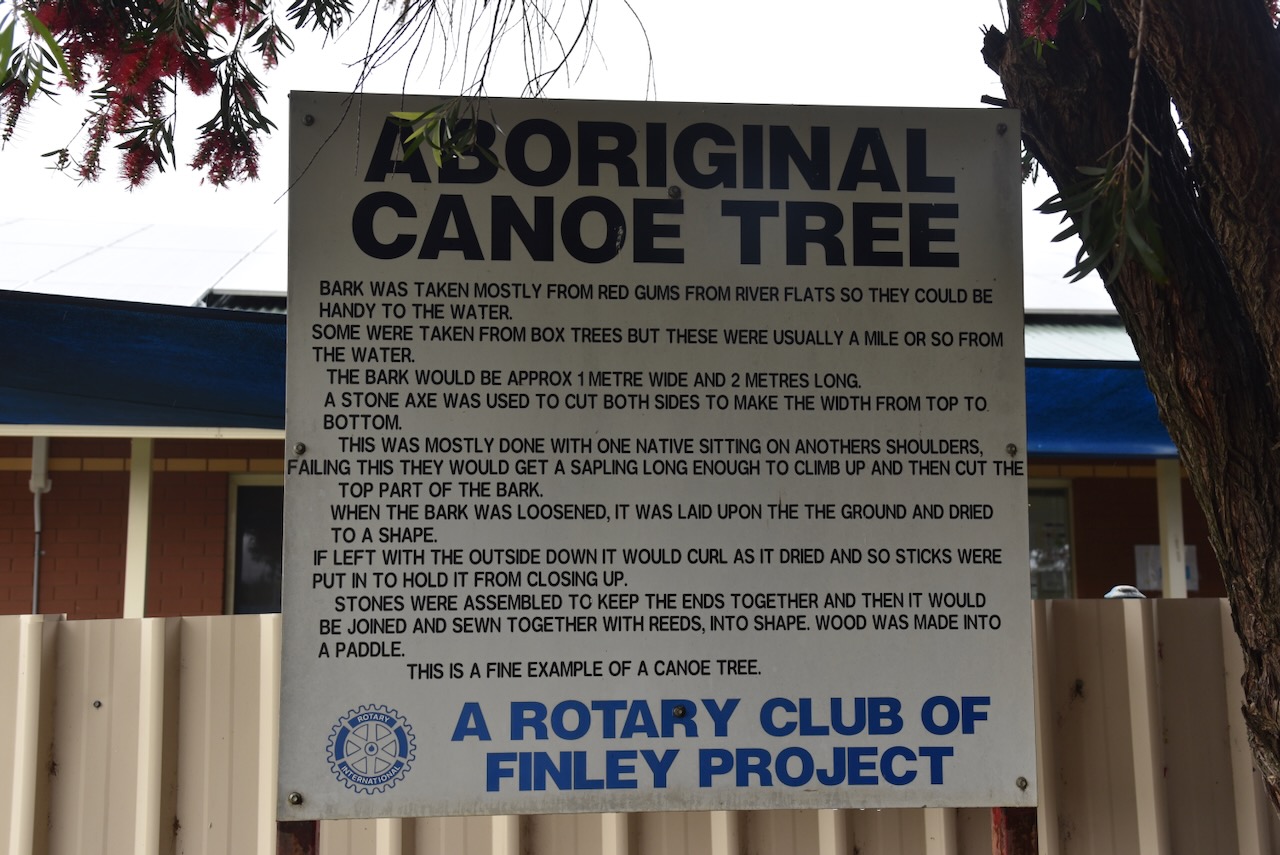 Marija and I then visited the canoe tree in Finley Memorial Park on the Newell Highway.