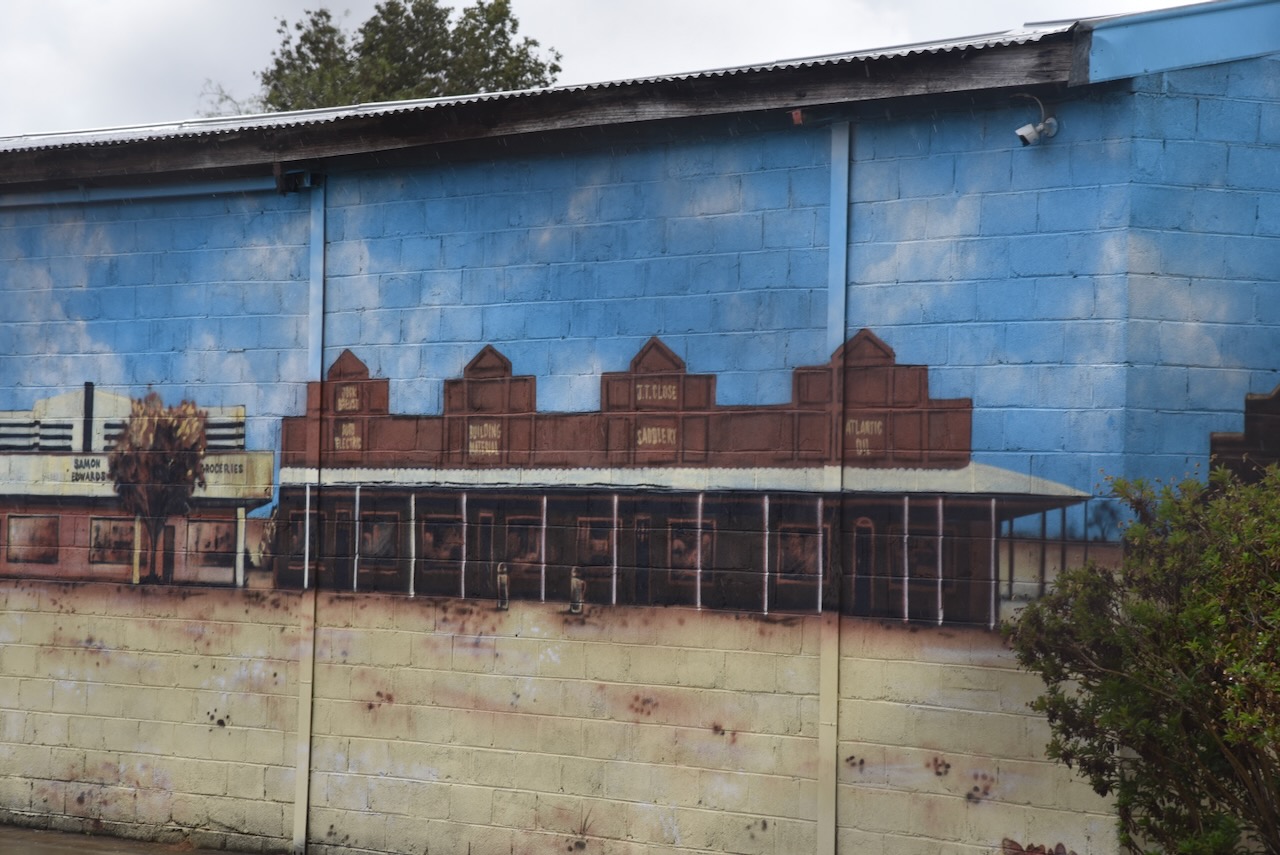 We had hoped to visit the Finley Historical Museum and Log Cabin, but we were a little too early, and it was closed. We were able to view the mural on the side of the museum, which is the work of Damien Mitchell, which was completed in 2022.
