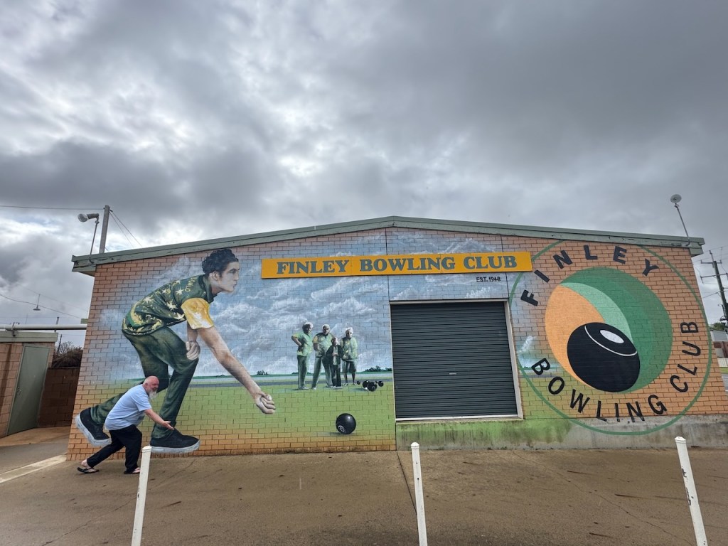Another work of Heesco and Mitchell can be found at the Finley Bowling Club. It was completed in 2020. (Facebook 2026)