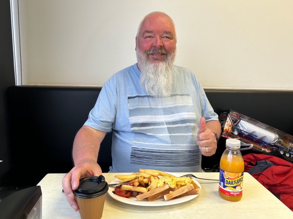 Our start for Tuesday, 4th day of November 2025, was breakfast at the BP Truckstop at Jeridlerie. We enjoyed a very nice breakfast. We also purchased a toy truck for our grandson, Flynn.