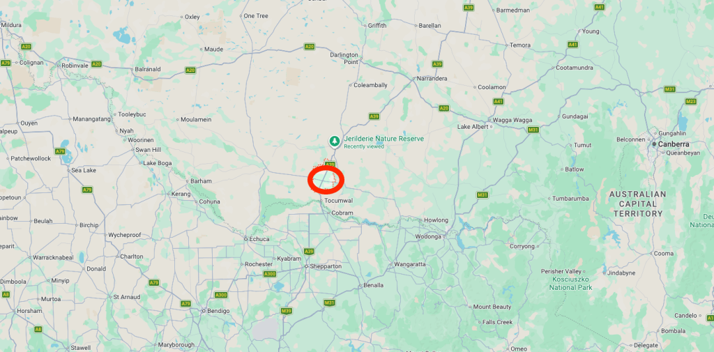Above: Map showing the location of Jerilderie Nature Reserve. Map c/o Google Maps