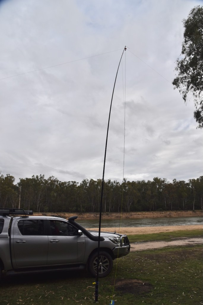 Marija and I drove a short distance down Pump Bend Track and set up very close to the river, and ensured we were in the activation zone of the 2 silos. We operated with the Yaesu FT857, 40 watts, and the 20/40/80m linked dipole.