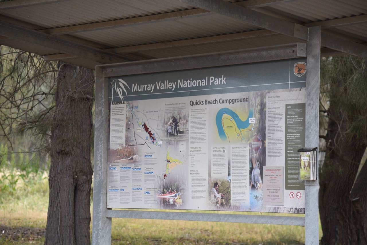 We followed Quicks Road and soon reached the sign for the Murray Valley National Park, Cottadidda section. This includes the Quicks Beach campground. So the sign on the Barooga-Cobram Road is a little misleading. It was getting late and we were getting hungry, but we decided to very quickly activate the park.