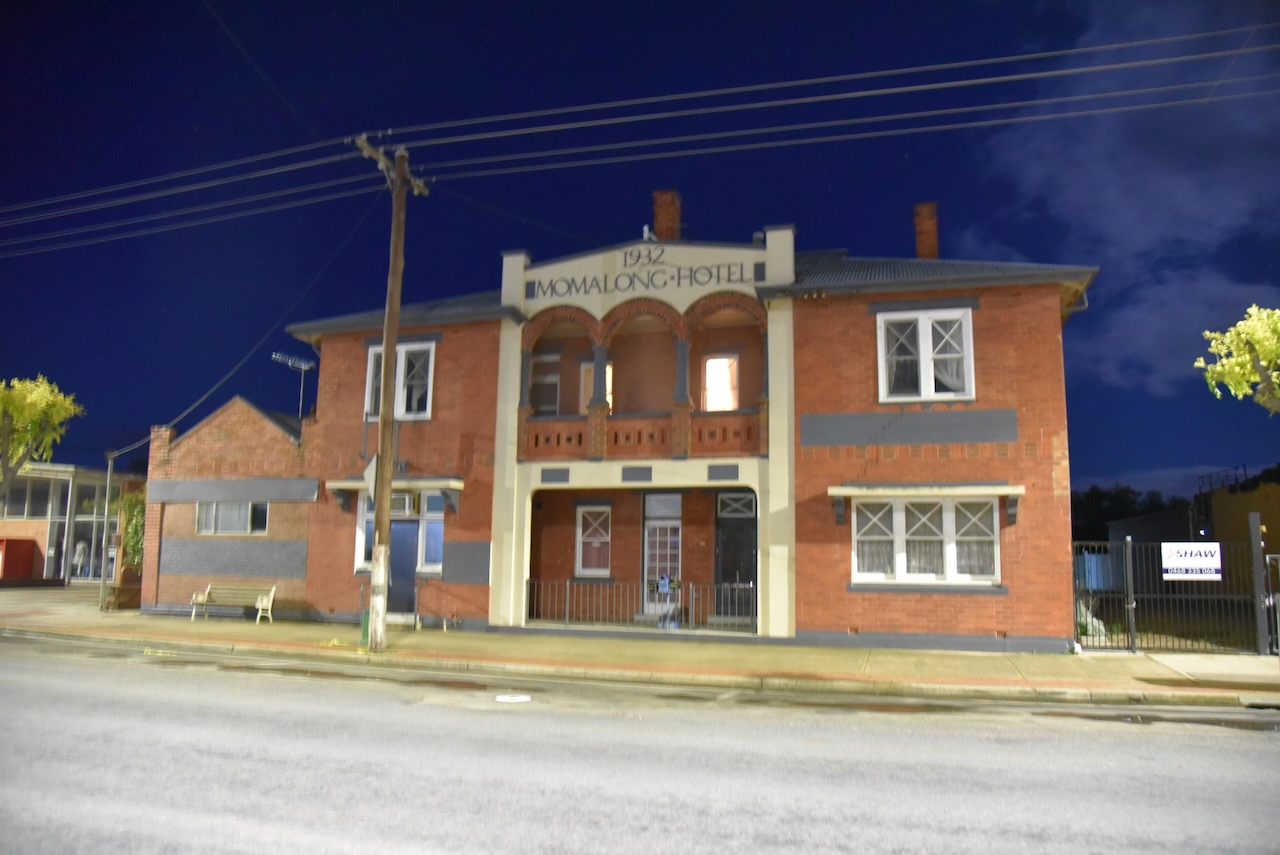 The current Momalong Hotel was built in 1932 following the devastating fire that destroyed the original hotel. The original Momalong Hotel was established in 1893 by Drummond Brothers. It took its name from the nearby Momalong pastoral run.(Berrigan 2025)