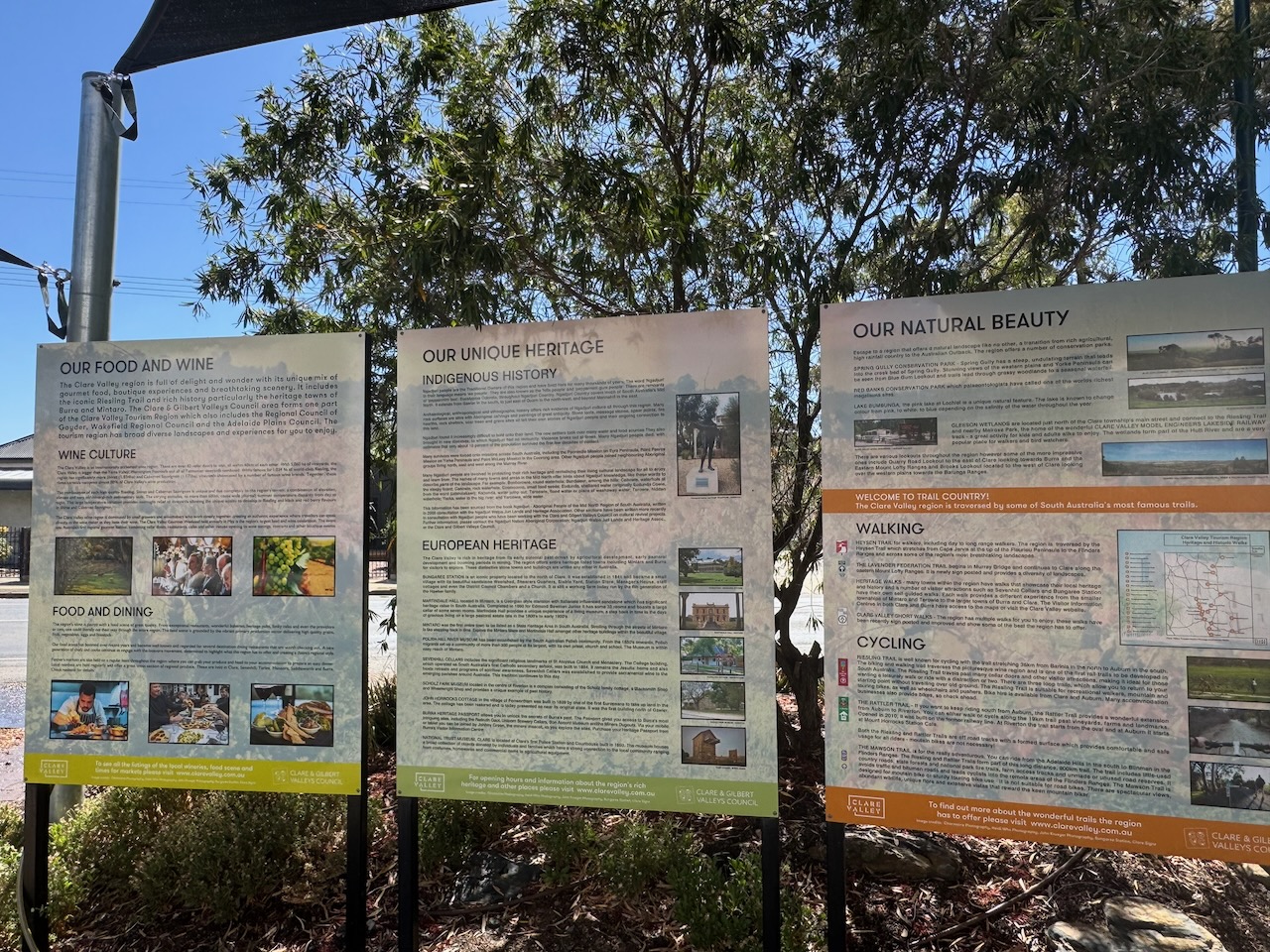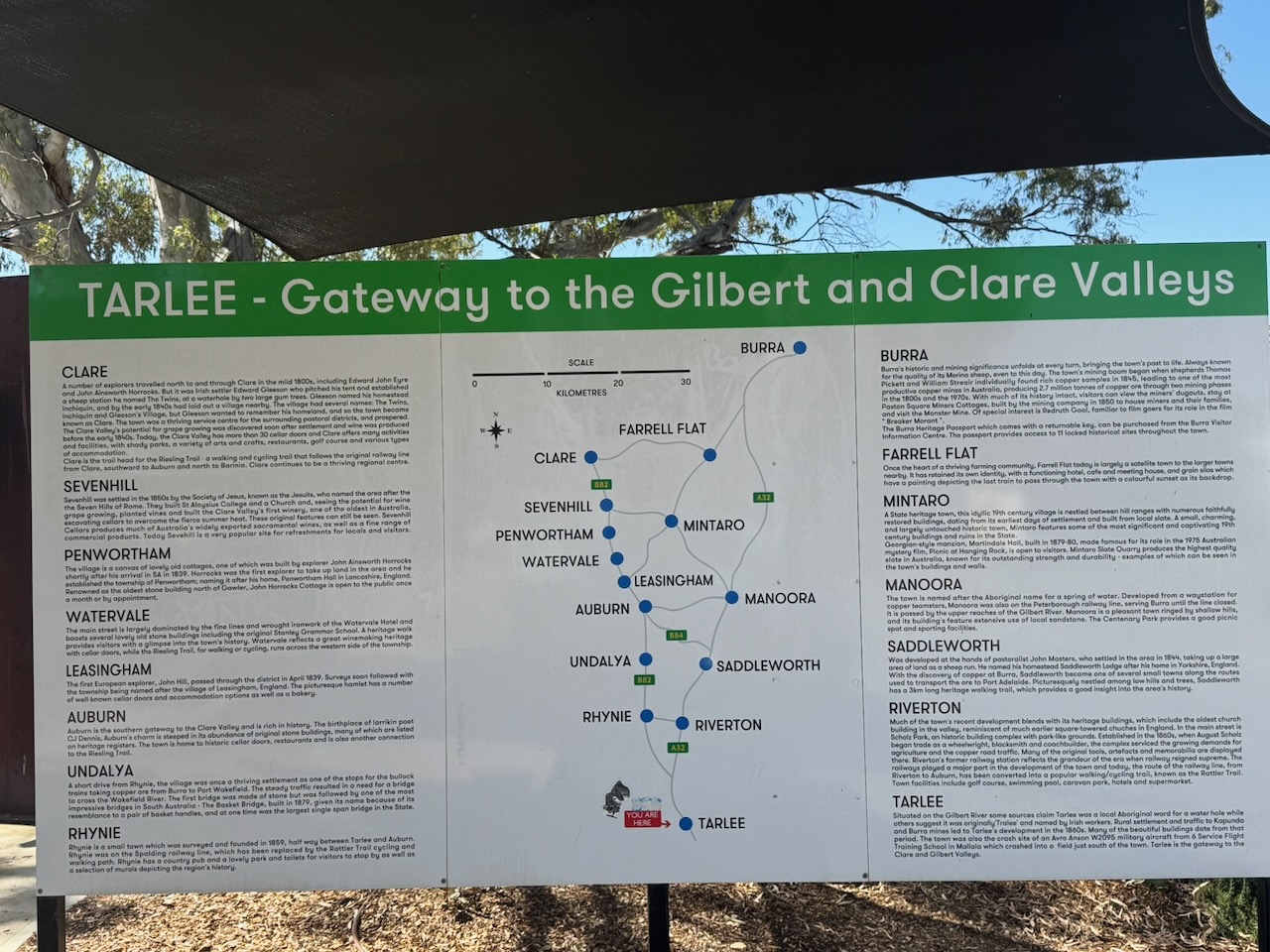 There is an excellent visitor information bay adjacent to the silos with a detailed history of the district. The info bay is named in honour of Frank Gorey, who worked at the Tarlee silos for 15 years. (UBC 2023)