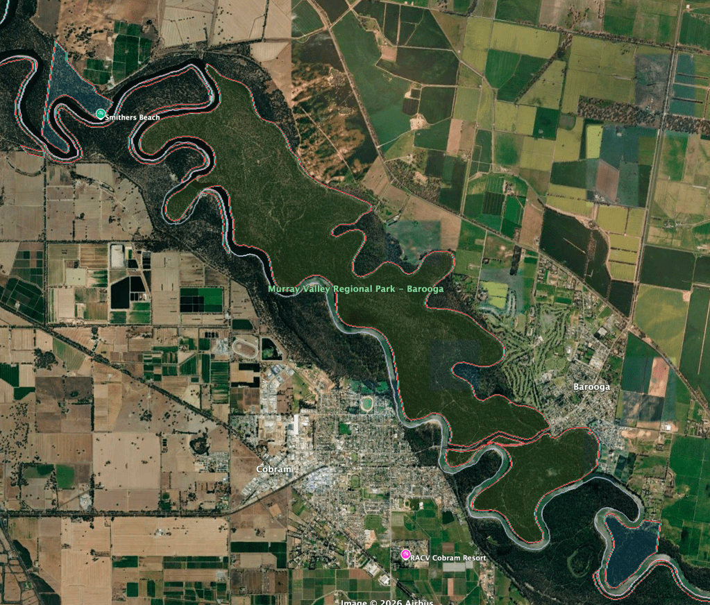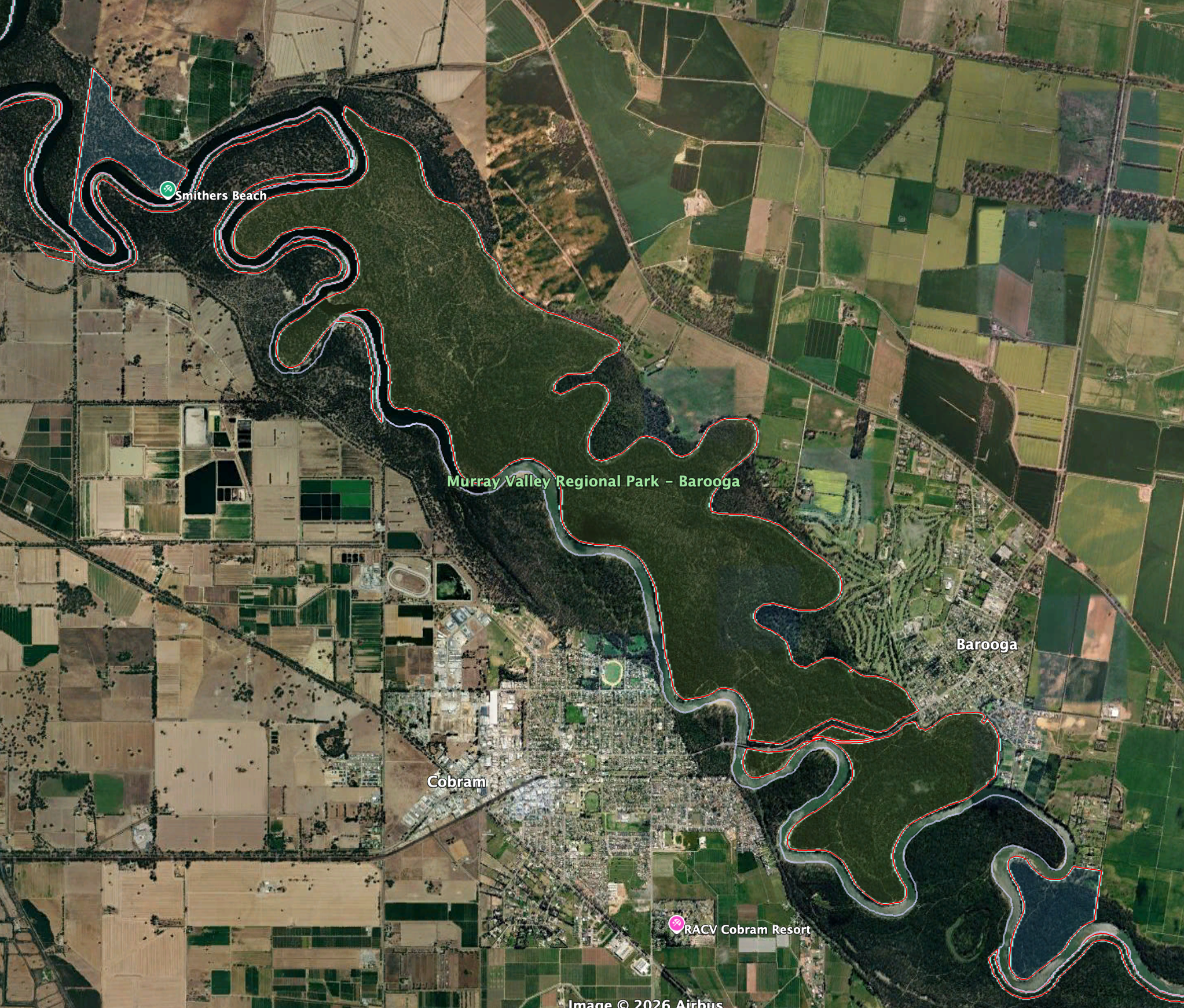 Above: the boundaries of Tocumwal Regional Park. Image c/o Google Earth