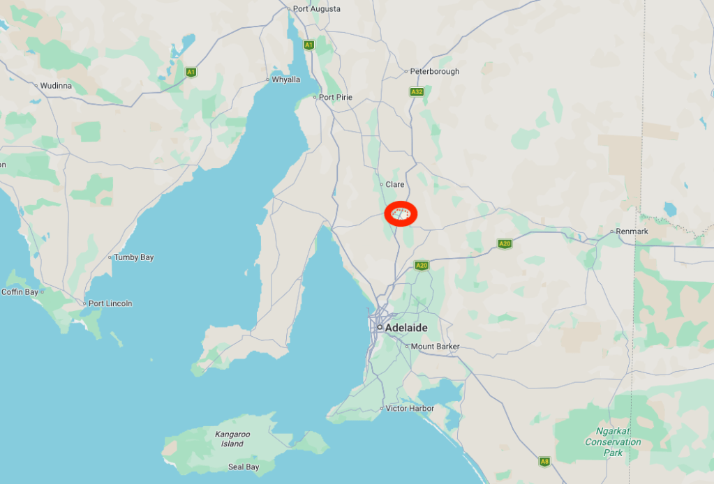 Above: Map showing the location of Kapunda. Map c/o Google Maps