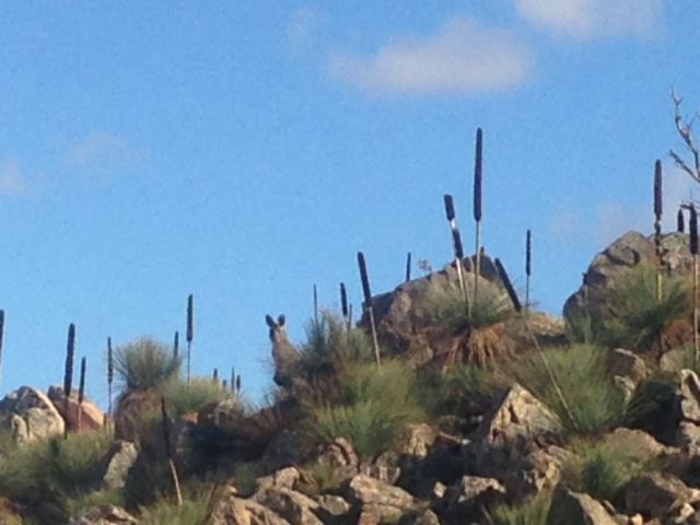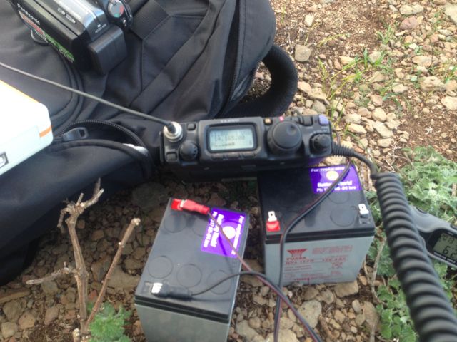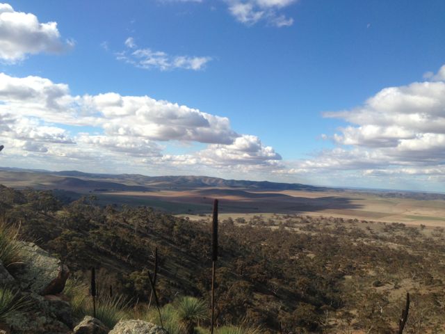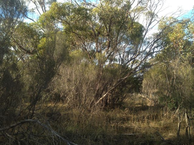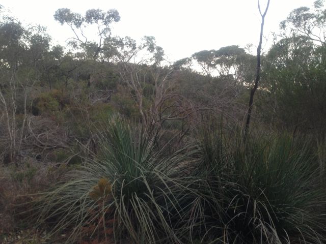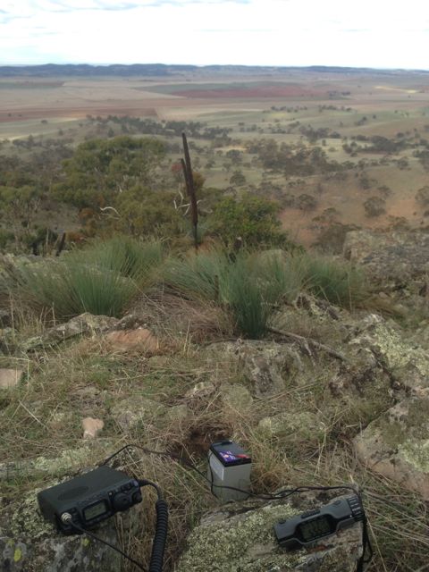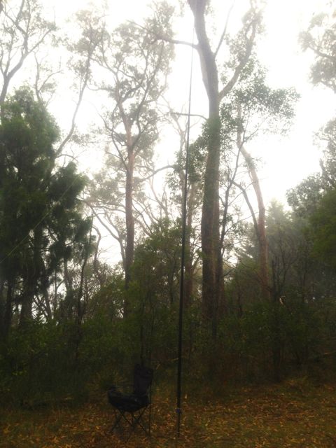 I accessed the park via Chaunceys Line Road, and set up the gear near the carpark at the eastern end of Chaunceys Line. As per usual I used the FT-817nd, just 5 watts output, and my dipole. There are plenty of trees here to hang the ends of the legs from, and I used a couple of big rocks to hold the 7m squid pole in place. The park contains thick mallee and other Mt Lofty Ranges vegetation, including gums.