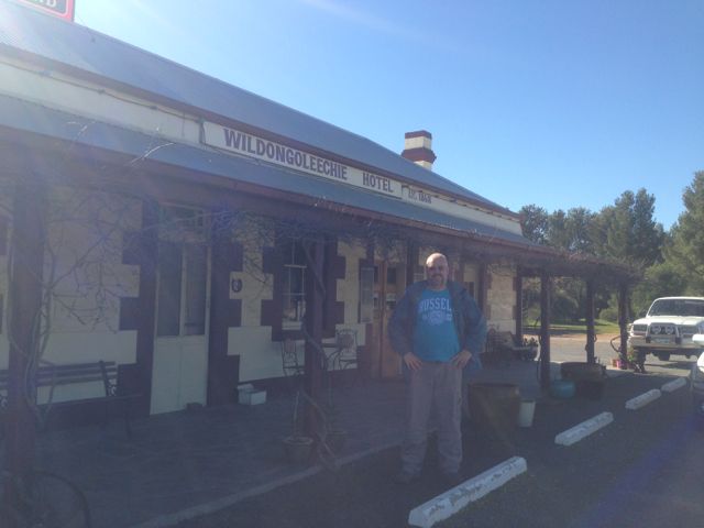 Following our activation of VK5/ SE-006, Ian and I got back to the car, only to find that Ian had left the lunches at home. Bugger ! We were both that hungry that we could have eaten a low flying duck. Our afternoon summit, Mount Bryan, VK5/ SE-001, was going to be a two hour climb, so we were in need for some tucker. So we travelled south on the Barrier Highway, and headed into the nearby town of Hallett, only to find that the local Servwell store, come take away was closed on Sundays. After some cursing & swearing, we headed to the local pub, the Wildongoleechie Hotel.