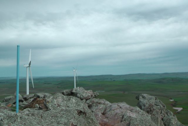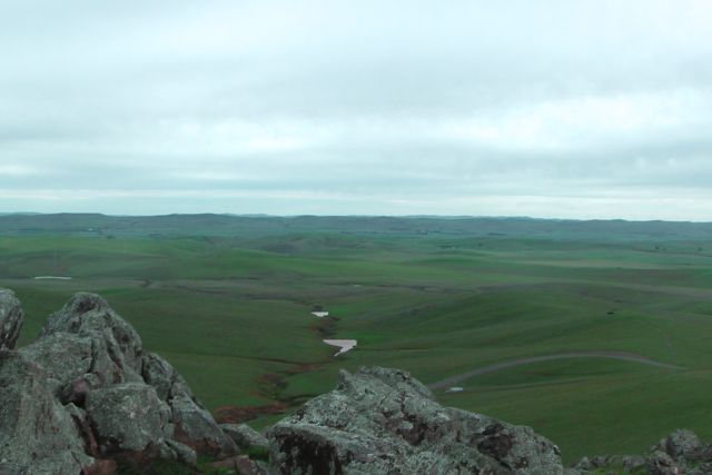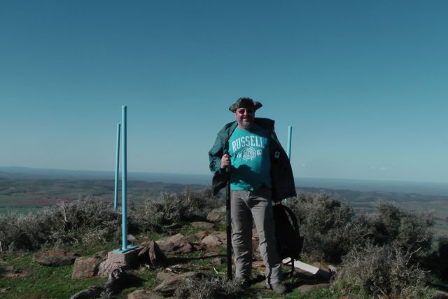 There is the remnants of a trig point at the top. It consists of three blue metal poles. Nearby is a concrete/besser block chair which faces the east. A bit cold on the backside, but an amazing view to the east from the comfort of the chair.
