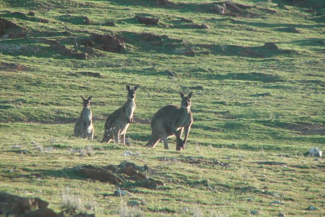 On the way back to the car we saw a large number of kangaroos. It was getting on towards 4.00 p.m. and they were just starting to come out and graze on some of the lush greenery on the hills.