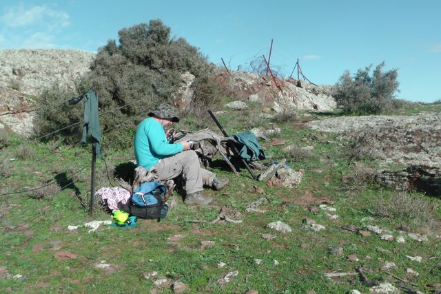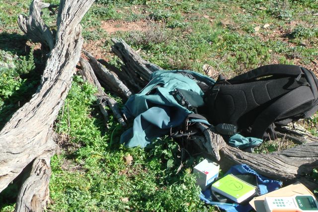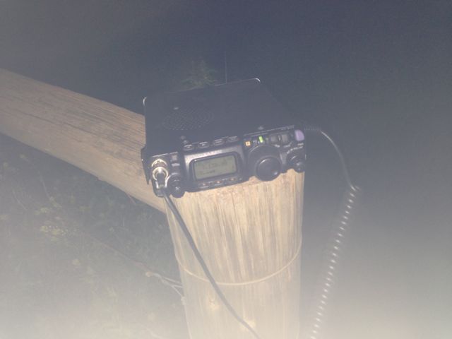 We found a dead tree limb lying on its side alongside the fence, not far from the permapine post, and this looked like a nice seat. I set up my Yaesu FT-817nd, with Ian’s Elecraft KX3 at the ready. During the course of the weekend I had lost the DC cable for the radio, so I was relying on the internal NIMH battteries lasting the distance.
