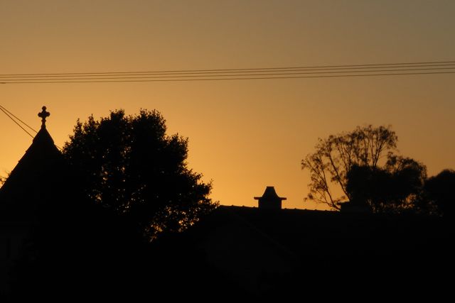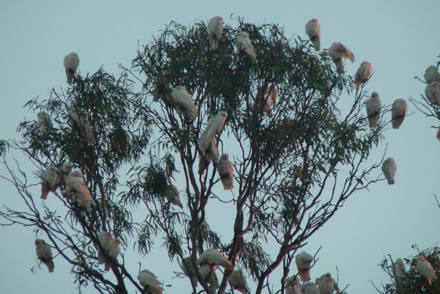 I got up at 6.00 a.m. to a nice warm hotel room, but outside the temperature was below zero, and there was a severe frost. After a warm shower and breakfast and preparing my gear, I headed outside to the cold, and waited for Ian, VK5CZ who was driving up from his home in Clare. Despite it being bitterly cold, there was a spectacular sunrise. And just across from the pub there was a noisy mob of corellas in a gum tree, obviously trying to wake up everyone in Orroroo.