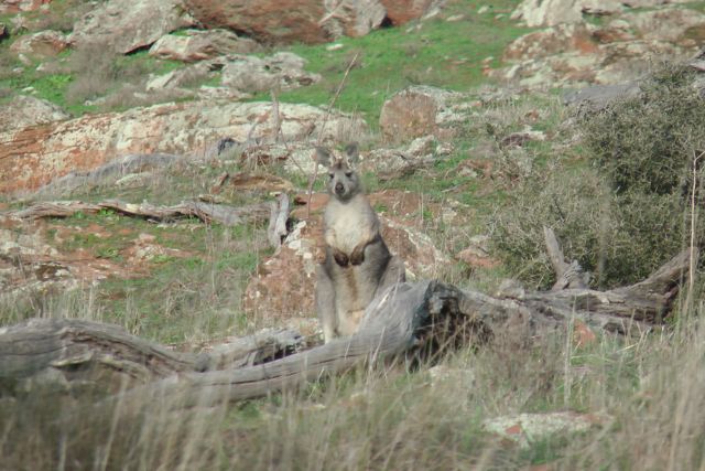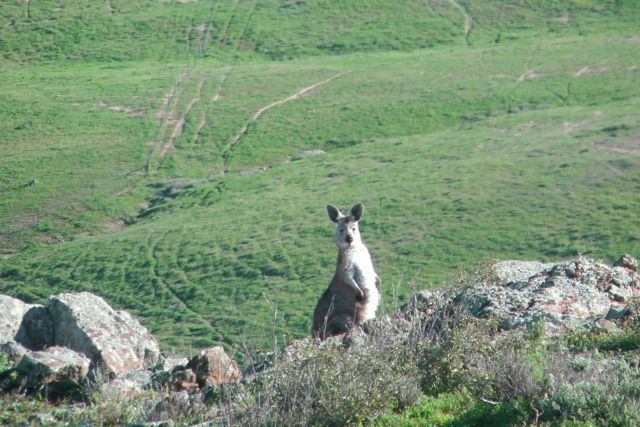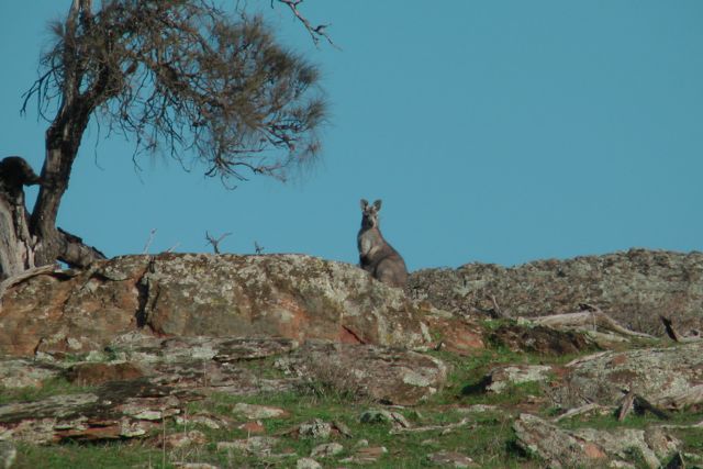 Ian and I saw dozens of kangaroos and euros on our way to the summit. I was recently asked in an e-mail by Ed, VK2JI, as to what a euro was ? The Euro is also referred to as the Common Wallaroo “Macropus robustus”. They are smaller in size to Red or Grey kangaroos. They are also of ‘high’ country, and have a distinct preference for ‘high’ places, and are typically found on rock ledges, escarpments, stony ridges and in fact anywhere where they can get a good view of their surroundings.