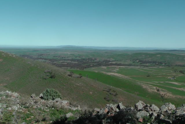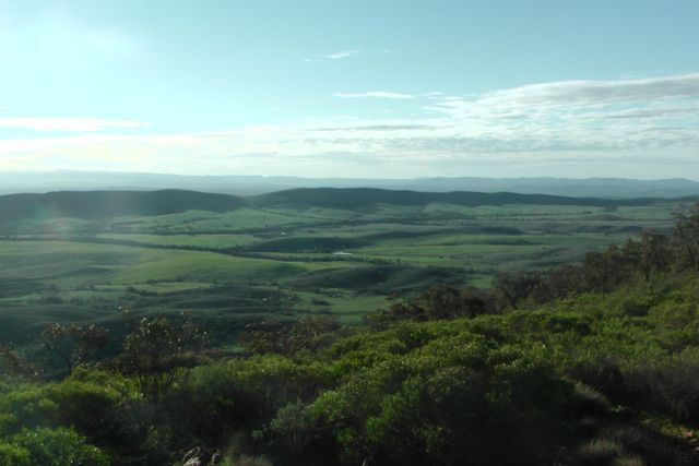 The walk to the summit was quite pleasant. The fog had partially lifted although there was still quite a bit of very low lying club. But the good thing was that the sun was out. There was not a cloud in the sky. The countryside here in the southern Flinders Ranges was very green and lush, due to recent very heavy rainfall. As a consequence the sheep were looking in very good condition. Remember this is private property, so please shut all gates.