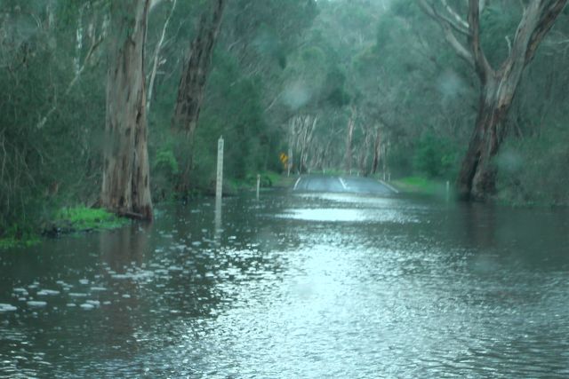 It was a 2 hour drive from the Cape Willoughby lighthouse at the eastern end of the island, where we were staying as part of the International Lighthouse & Lightship Weekend (ILLW). The weather on Friday and Saturday had been very severe, with heavy rain, hail, lightning and very strong winds. In fact the wind speeds had gusted to 140 kph on the Saturday. The road from the lighthouse back to Penneshaw was totally impassable by 2wd traffic, so Andy and I had to take some dirt backroads, to get onto the bitumised Hog Bay Road, and then the Playford Highway. In fact some parts of the main bitumen roads were also flooded, and there was lots of debris on the road.