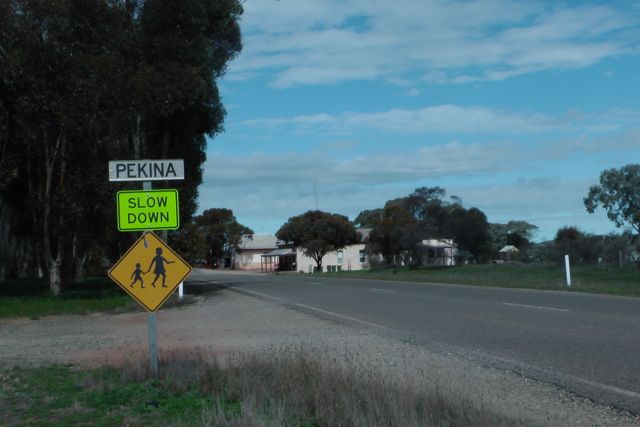 Pekina township is located about 14 km south of Orroroo. It is a tiny town with a population of only 172 people that live in the town itself, and the surrounding district. Nowadays the town consists basically of a general store, established in 1874, and a hotel which was established in 1877. The name of the town is thought to derive from the local Aboriginal word for “creek water” .