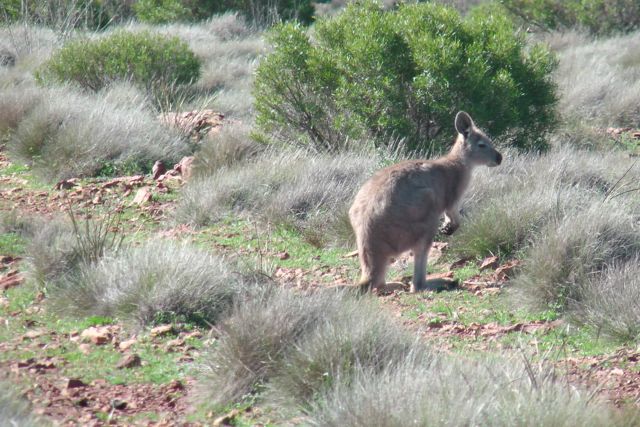On our climb up we spotted a number of Euros (wallaroos). But one in particular appeared to be more interested in us, than we were of him. Rather than bounding away up into the rocks like his mates did when they spotted us, this little guy kept coming closer and closer to us, to find out who was encroaching on his territory. Eventually he became camera shy and bounded off, up to the top of the summit to join his friends.