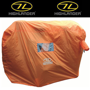 It is made of 3000 mm HH waterproof and windproof AB-TEX fabric. It is high visibility orange and measures 142 cm (length) X 47 cm (width) X 92 cm (height). Its weight is just 340 grams. It has some PVC clear windows and a breathing hole with an integrated draw cord. It is really compact and lightweight, and folds away into a small bag 10 X 22 cm.