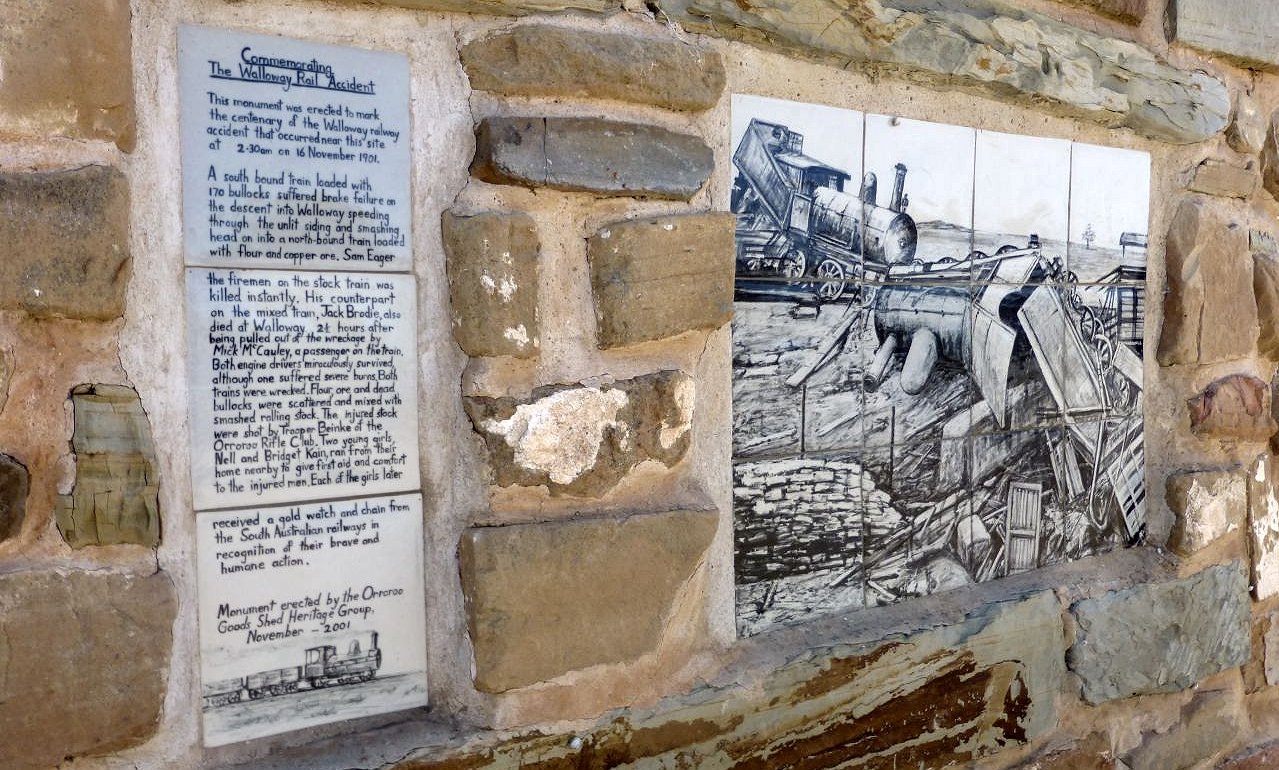 Walloway was the scene of a fatal train accident at about 2.30am on the 16th November 1901. Two trains collided killing the stock train fireman instantly, and later claiming the life of the fireman of the other train due to his injuries. A south bound locomotive travelling with 170 bullocks was to pull into the Walloway siding to enable a north bound train to pass. However to the train To the driver’s horror, the brakes locked up, and the slippery rails caused the wheels to slide. The train continued on passed the station and collided head on with an unsuspecting oncoming northbound train loaded with flour and copper ore, on a bridge over a small creek. Today Walloway is little more than a ghost town.