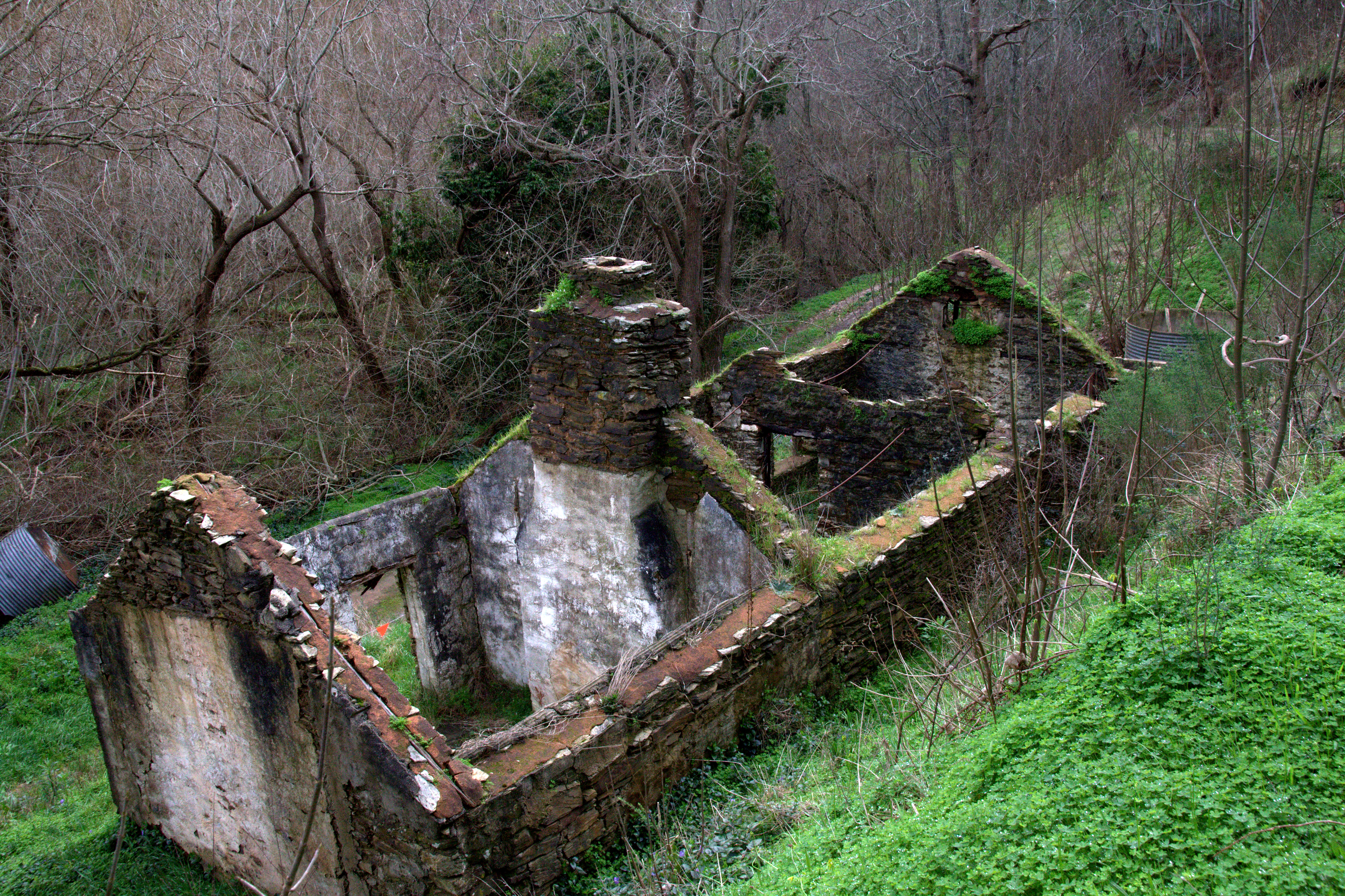 In 1860-61, a house of local sandstone was built and, at one time, housed 14 children. The house remains and a coach house, stable and milking shed can also be found nearby. These ruins are well-maintained and represent one of the earliest farms in the area.