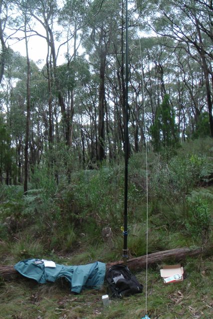 After half an hour of sitting on a wet log, I had 18 QSO’s in the log on 40m SSB, into VK3 & VK5.