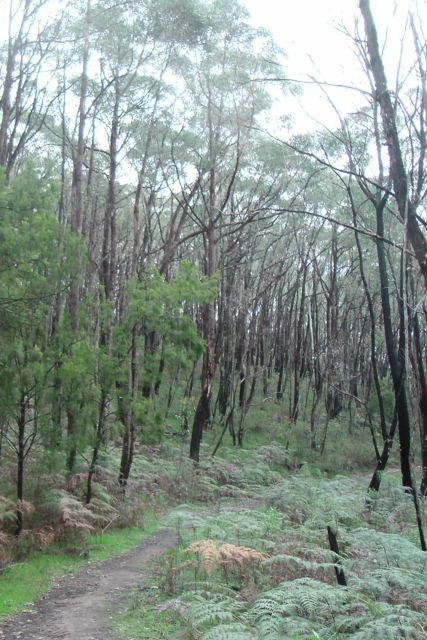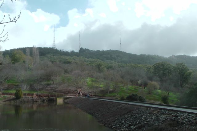 You cannot access the park via Summit Road, and there are no roads leading into the park. I accessed the park via the Mount Lofty Botanic Garden. I entered the Garden via the lower carpark off Lampert Road, and then walked about 4 kms through the garden, and into the park. It took a bit of climbing and fence jumping, but I eventually got there. Below is a photo looking through the Garden up towards the CP. The three TV transmitter towers are in the background.