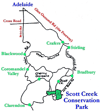 Mylor Conservation Park is situated in the Southern Mount Lofty Ranges ‘Adelaide Hills’, about 15 km south east of Adelaide. The park consists of 49 hectares of remnant bushland. Much of the region surrounding Mylor Conservation Park has been largely cleared for residential and agricultural purposes. The park forms part of a mosaic of remnant bushland areas in the district which are linked by vegetation corridors on both public and private land.