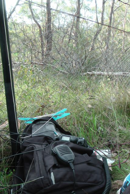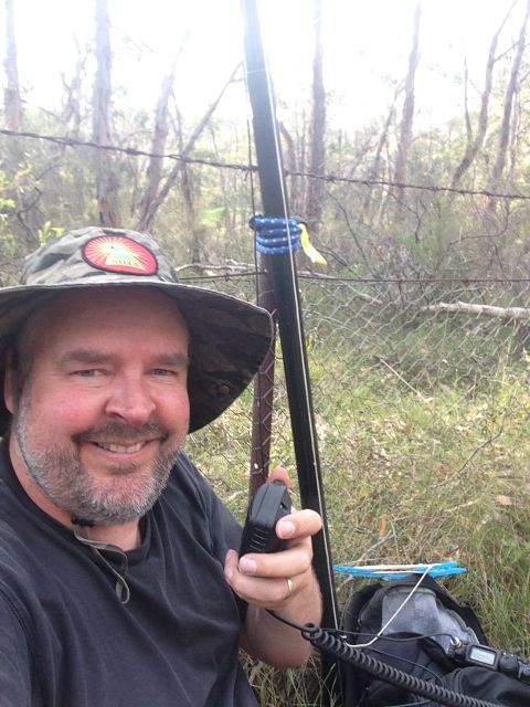 I accessed the park via Whitehead Road, just off Strathalbyn Road (the main street of the quaint little town of Mylor). The town was proclaimed in 1891 by Acting Governor of South Australia, Sir James Boucaut, who named it after his Cornish birthplace. Towards the end of the Whitehead Road there is a small parking area. From here I walked into the park and set up my gear, using the north western park boundary fence to secure my squid pole with some octopus straps. The chickenwire fence also made a nice back rest. Fortunately the track heading north at this point made a good clearing for me to string out the legs of the dipole so the antenna was radiating east-west. I found a comfy spot up against the fence, in the shade from the hot sun (it was about 28 deg C).