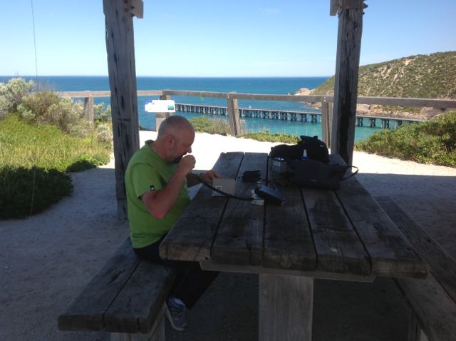 I operated on 40m SSB for about 45 minutes in the park, and ended up with 11 QSO’s into VK2, VK3, & VK5. It was time to head into Port Vincent for some refreshments.