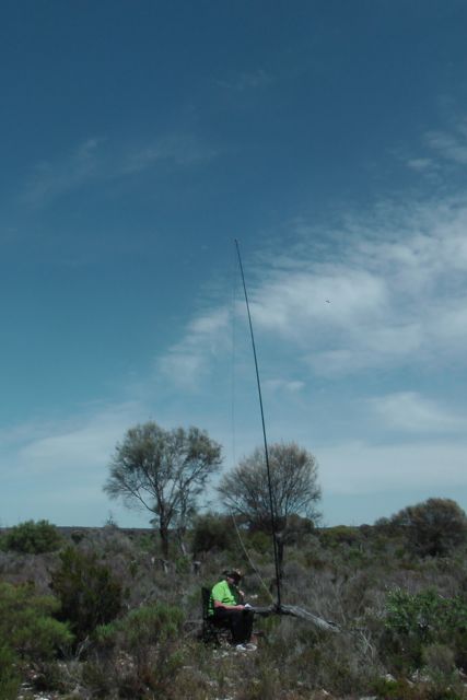 Sunday was shaping up to be a very hot day and it was already stifling with a very stiff breeze. The mallee scrub of the park is very thick and I didn’t fancy walking to far in through fear of snakes and goannas. And it would have been physically impossible to set up the dipole.