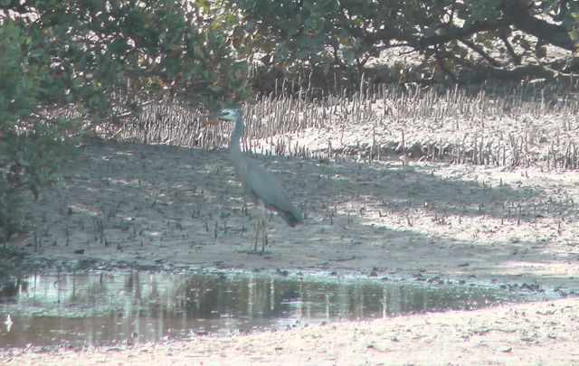 We travelled passed the old Wheatsheaf pub, and down along the dirt causeway, through the mangroves. At the end of the dirt road, there is a large parking area which adjoins Wills Creek. We were surprised at the number of people that were here, either launching boats or going swimming in Wills Creek. By this stage of the afternoon the weather had become really hot and the wind was still quite strong and gusty. Fortunately there was a tin shelter at the eastern end of the carpark which had tables and benches in it. So it was an ideal place to set up the gear and escape from the hot afternoon sun. The bush flies however did not want to co-operate. They were still out in force, and Marija and I needed to wear our face netting ! We used an adjacent concrete table to the shelter, to strap the squid pole to.
