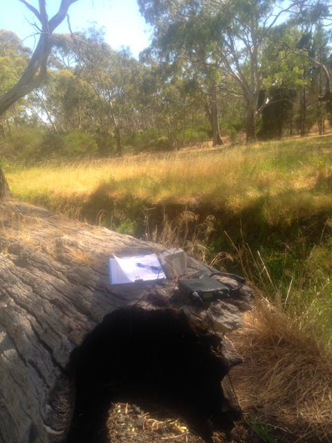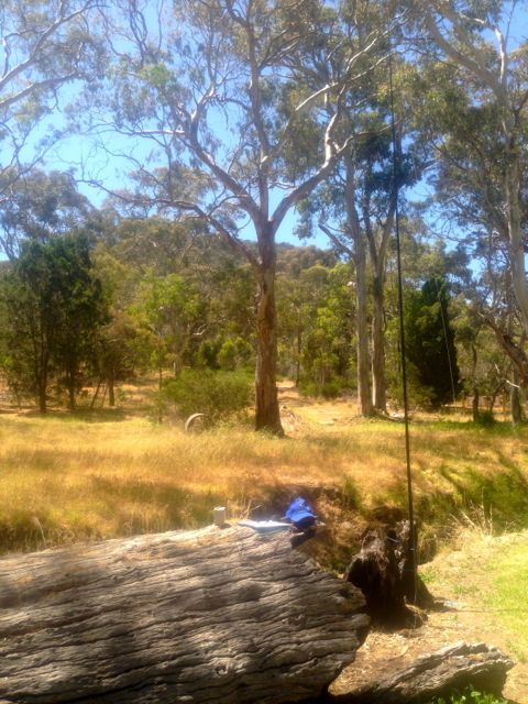 I used a huge fallen gum tree to secure the 7 m squid pole to, with the use of some octopus straps. The fallen tree also made a great bench, and there were quite a few conveniently placed large gum trees which provided some shade from the already very hot sun. This was also alongside a small creek which had quite a bit of running water. But because of the heat, I was ever vigilant of snakes, particularly Red bellied black snakes, which love the water and feed on frogs. Although they are a dangerous snake, no deaths have been recorded from bites by Red Bellies. The venom causes blood-clotting disorder and muscle and nerve damage, enough to knock you off your feet, but rarely deadly. Nethertheless I did not want to encounter one.
