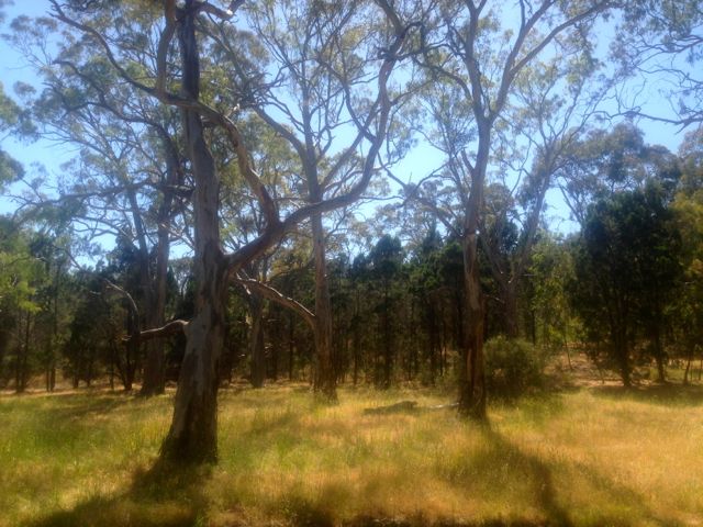 Fortunately there was some shade offered by small gum trees. It was great to sit under these and escape the sun. The temperature was rapidly increasing and there was no breeze to speak of.