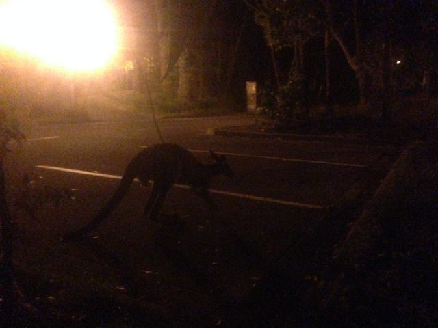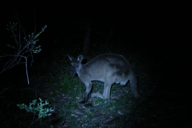 John then took up the operating spot, and whilst John was operating on the Net, I headed up to the main look out area to enjoy the night time view. Surprisingly, there were not many cars in the carpark. But what was lacking with motor vehicles, was replaced by kangaroos. There were at least half a dozen Western Grey kangaroos roaming around in the carpark. They appeared to be quite tame, and you could get relatively close to them. The photo below isn’t great….it was taken on my i-phone.