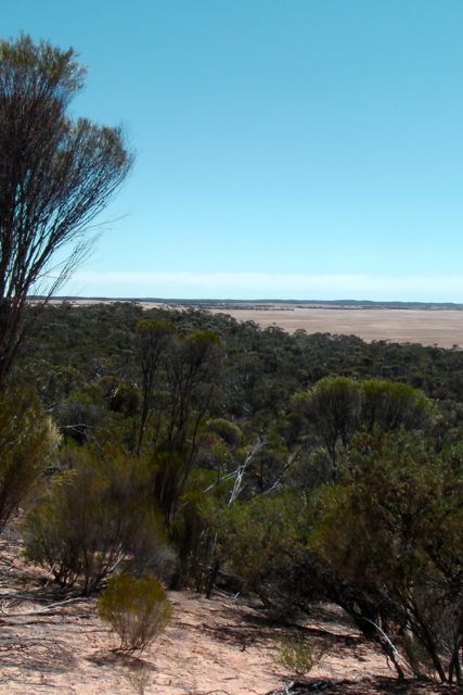 At the end of the activation, Marija and I went for a walk along the 1.5 km Karte Youth Hike, within the park. It commences and finishes at the campgrounds and winds its way through the scrub and up to the top of one of the higher sand dunes. The walk takes about 45 minutes return, and was constructed in 1988 by students at the Pinaroo Area School as part of the Bicentennial Project. There are Interpretive signs along the walking trail which provide an insight into the importance of the areas remaining vegetation. The signs explain how certain plants, ranging from small ground cover species to large trees, have an important part to play in the mallee. There are very good views from the top across the park and the seemingly endless farmland which stretches off to the horizon.