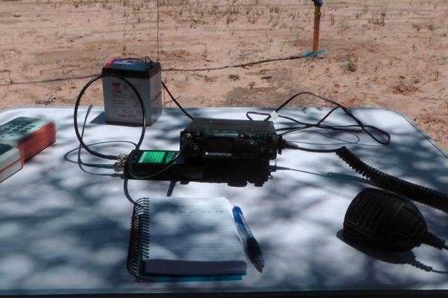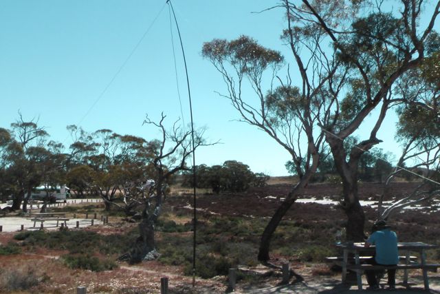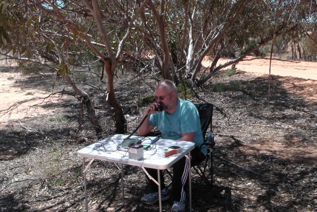 Fortunately the track ran north – south, so I set up the 40m dipole using my 7 m squid pole, and tied off the ends to some of the small native shrubs. We set up the folding table and deck chair, and away I went. My first contact from within Wyperfeld was with Peter VK3YE who was sitting on the end of a concrete pier at Chelsea Beach in Melbourne. Peter had a great signal as always from his QRP pedestrian mobile set up (5/8 both ways). This was followed by a steady flow of callers from VK3 & VK5, including Tim VK3MTB who was operating portable from Morwell National Park, and Tony VK3VTH who was operating portable from the Lower Glenelg National Park.