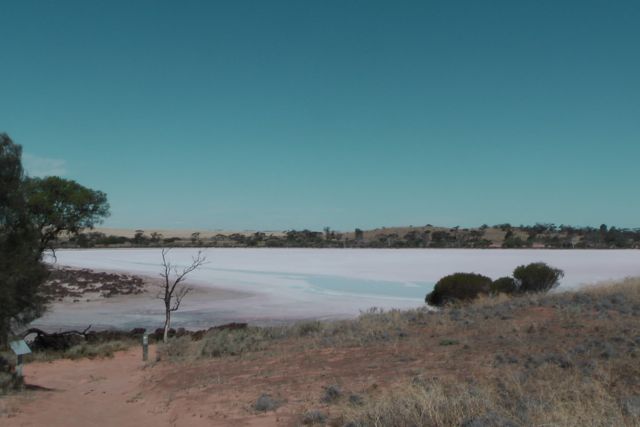 Murray Sunset NP was created in 1991, and in 1999, the park was expanded to encompass Pink Lakes State Park. This is the area of the park that Marija and I activated. The lakes are dubbed “pink” after the beta-carotene pigment that colours it in late summer, caused by the algae Dunaliella salina. Beta-carotene is a red-orange pigment found in plants and fruits, especially carrots and colourful vegetables.Between 1916, through until 1975, this area was the site of a major salt industry. At its peak, 10,000 tons of salt was harvested and railed from Lake Crosbie, Lake Becking, and Lake Keynyon to the nearby town of Linga. Marija and I drove through Linga, and sadly it is a shadow of what it previously was at its boom.