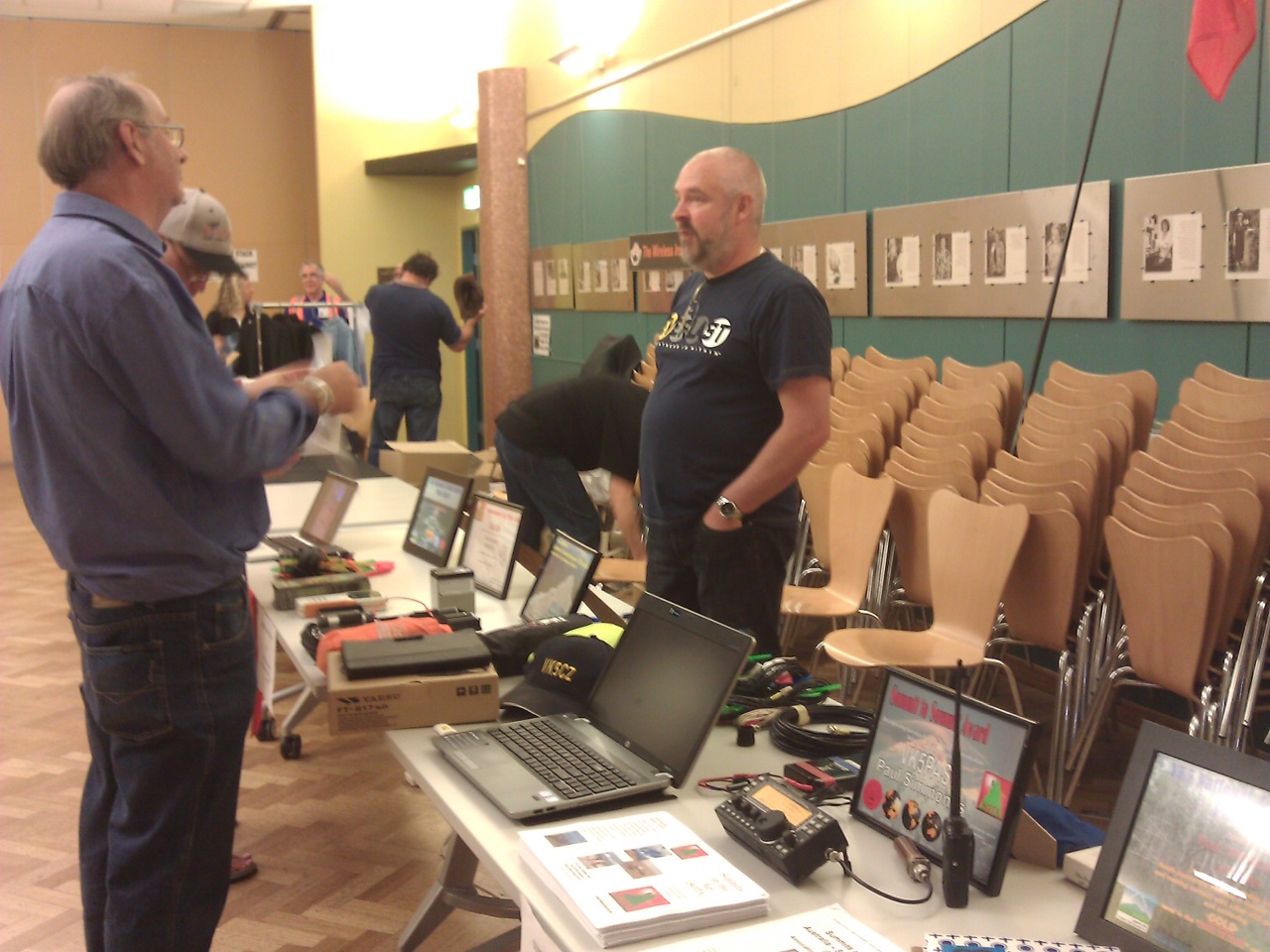 Next door in the adjacent hall, Ian VK5CZ and I had a display on Summits on the Air (SOTA) and the VK5 National & Conservation Parks Award. During the course of the day we had many interested hams approach us about the 2 programs. It was great to catch up with many amateurs that I had spoken to on air but had never met. This included Paul VK4FPPR/5, who I had spoken to on 40m the night earlier. I had been tuning around the band & heard Paul speaking with Marshall VK3MRG (a keen SOTA enthusiast) about portable operation.