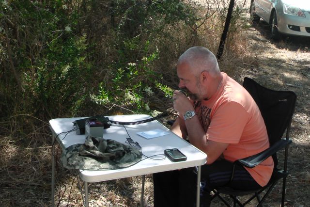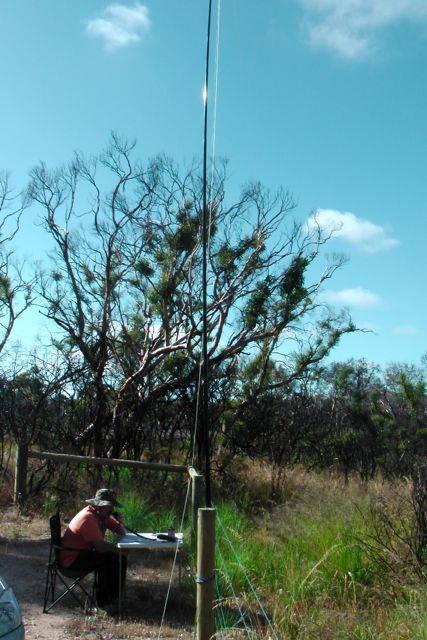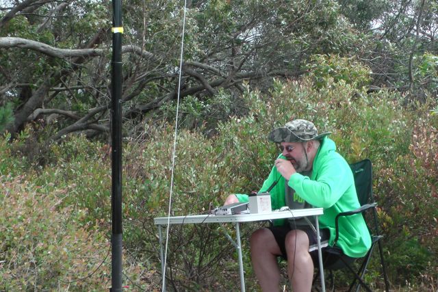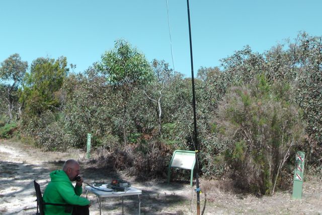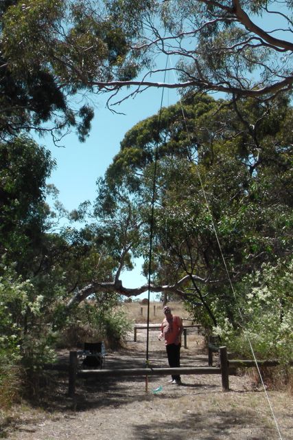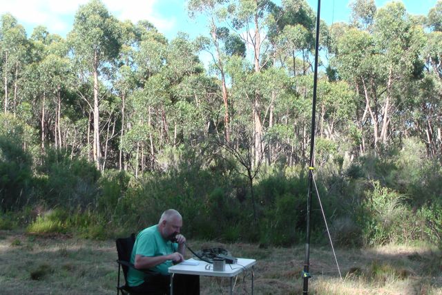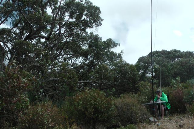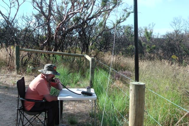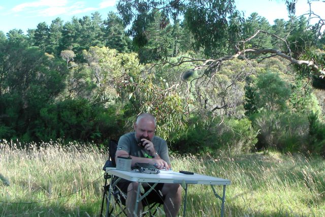 We found a nice operating spot, just inside the park gate on the Hindmarsh Tiers Road. There was plenty of room to set up the table and chair, and extend the legs of the dipole. The only down side were the large sand ants. They pack a bite with a lingering sting, as I found out.