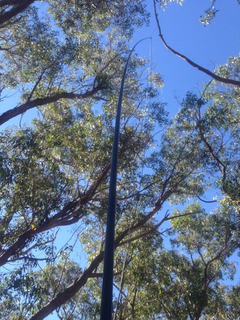 After erecting the squid pole, I had to take it down and move it a little further toward’s Noel’s fence line, because it was getting tangled in the gum tree branches overhead.  But I got that sorted and found some shade out of the warmth of the afternoon sun, and made myself comfortable.
