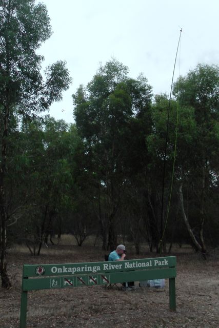 My first contact was at 0419 UTC (2.49 p.m. S.A. local time) with Jim VK5TR, who I know through the Adelaide Hills Amateur Radio Society. Jim had an incredibly strong signal coming in from the southern suburbs of Adelaide. This was followed by VK3ER, and then my old mate Roy VK7ROY. Despite the fact that it was still early in the afternoon, the 40m band appeared to be in quite good condition.