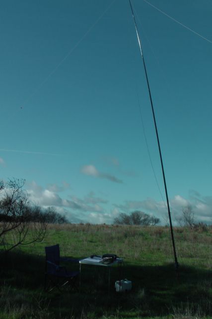 After working a total of 11 stations, the caretaker came over to say hi. He was accompanied by his sheepdog. The gentleman was very interested in my operation, and had a background in marine radio. His dog however, only wanted to chase sticks, and would not leave me alone. That is what all the barking was about for those that heard it. I had to keep a careful watch to make sure the dog didn’t run through the legs of the dipole.