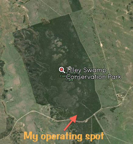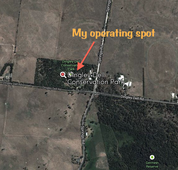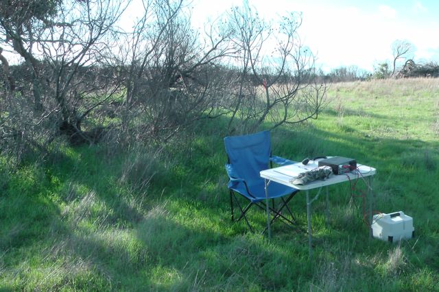 I set up my gear off a little track on the northern side of the cottage. The scrub is quite thick, but I managed to find enough of a clearing to stretch out the legs of the dipole.