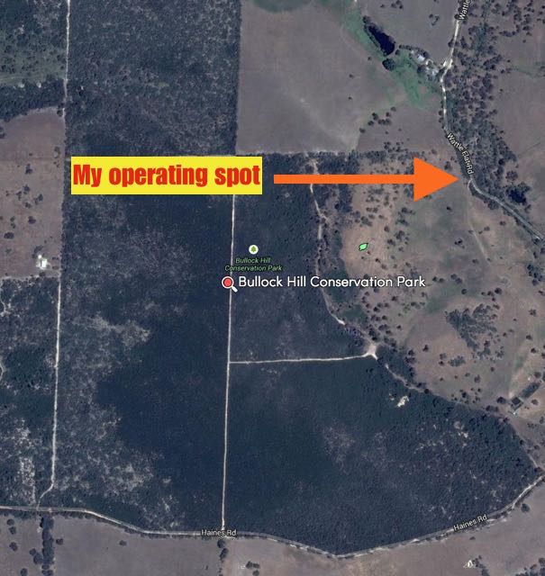 A few QSOs later I was called by Bob VK5FO who was operating portable in the Morialta Conservation Park in the Adelaide Hills. Bob had a very nice 5/8 signal to the Murray Mallee.