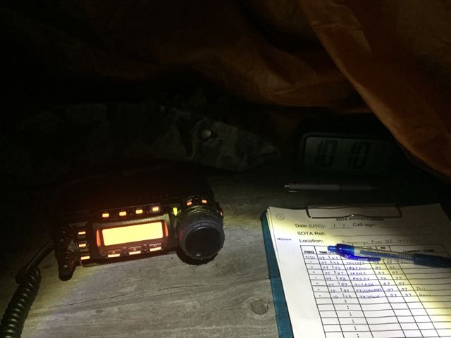 The drizzly rain had just started at this time, and it would continue on and off for the rest of the activation. There were about five occasions when I had to drive underneath the bothy bag.