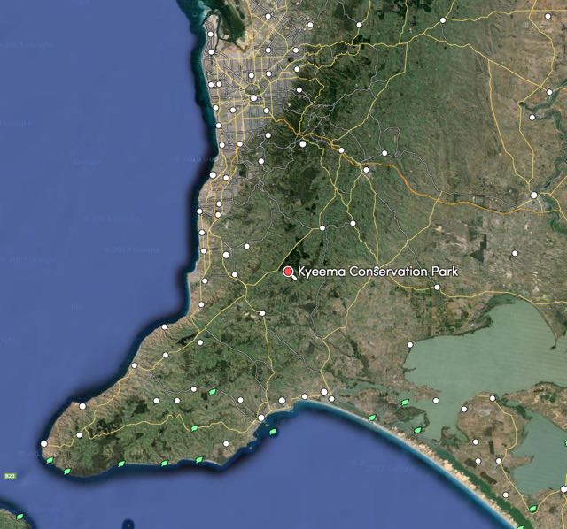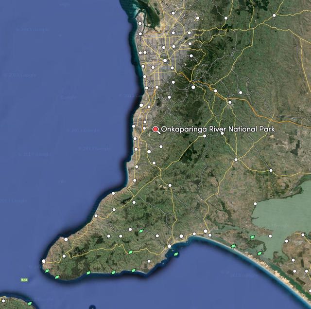 Above: Map showing the location of Onkaparinga River National Park. Map courtesy of mapcarta.com